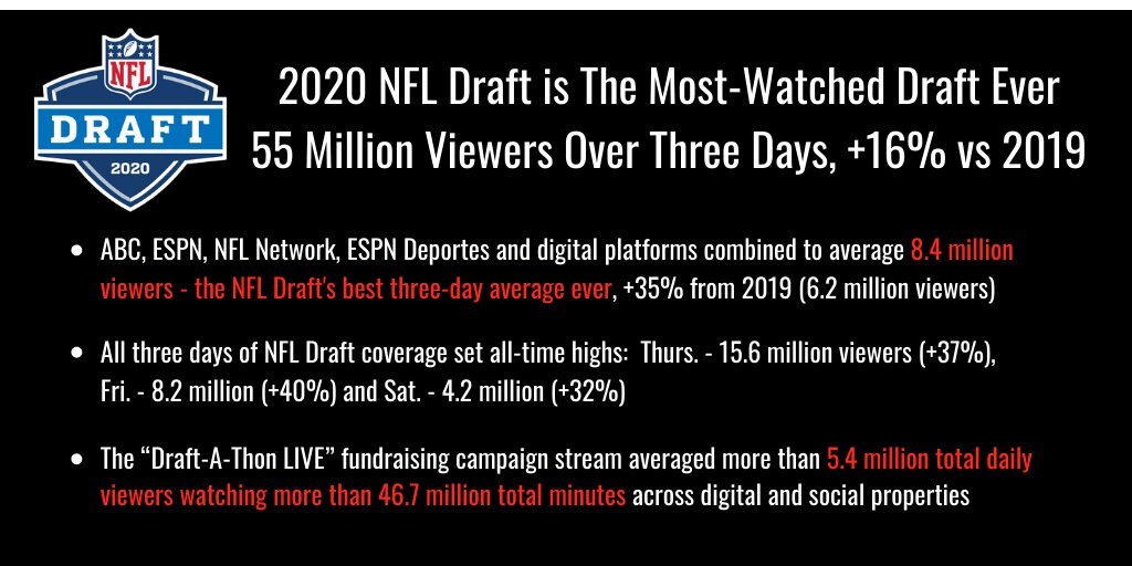 Nfl Media On Twitter Nfl Abcnetwork Espn Nflnetwork Espndeportes Draft A Thon Live Helped Raise 6 6 Million During 2020 Nfldraft Contributing To The Collective Total Of More Than 100 Million Raised By The Nfl